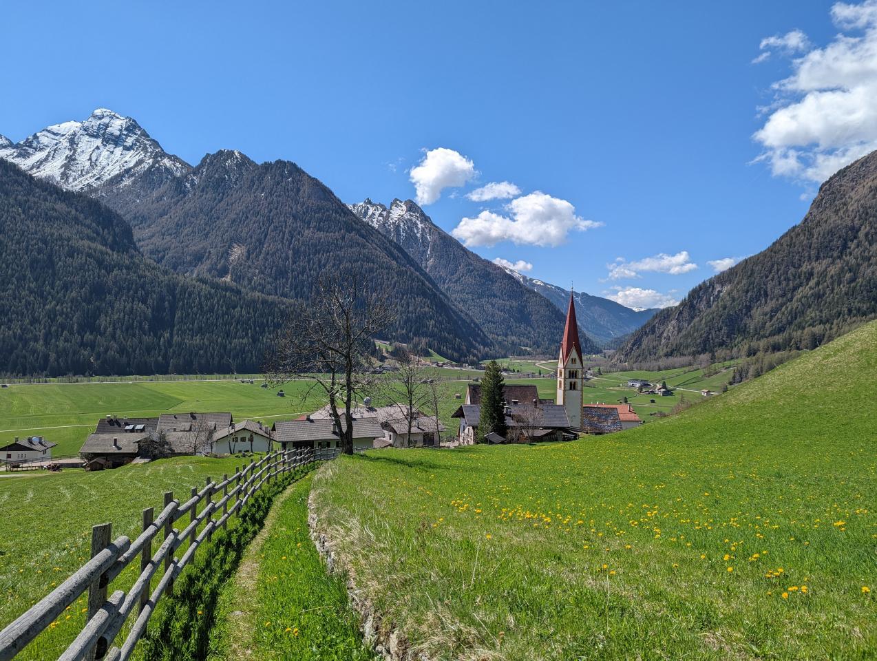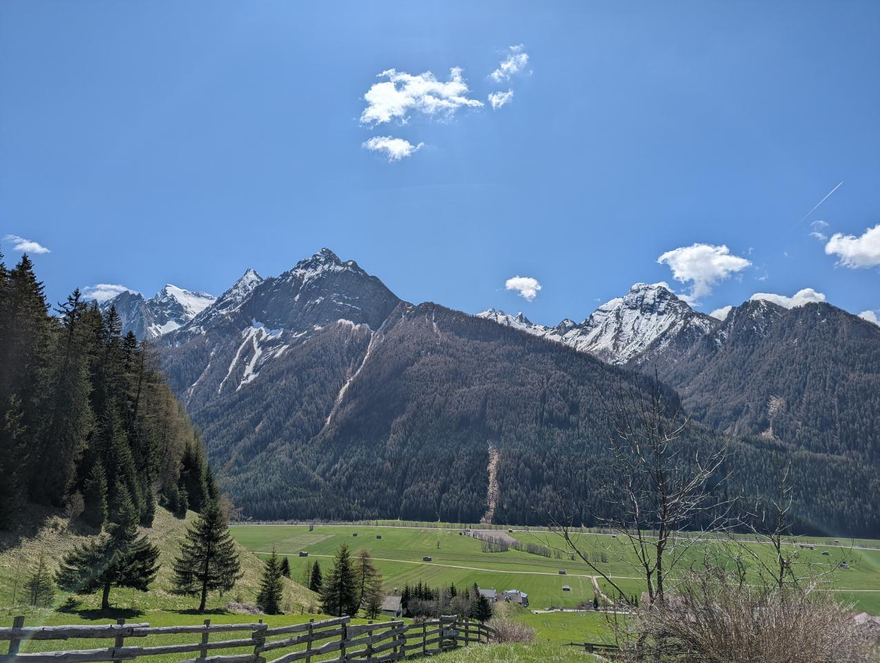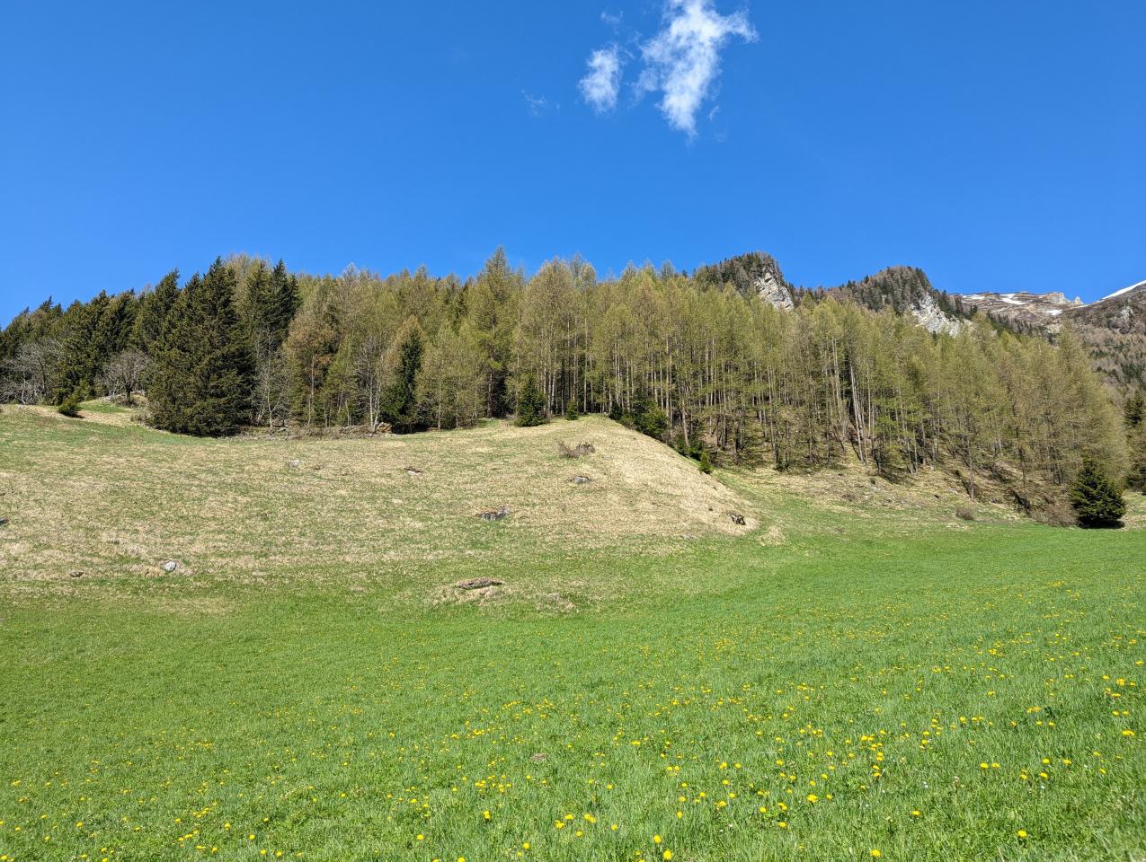 Etwas oberhalb von Kematen. Die Wiesen sind nun deutlich grüner geworden über den letzten 2 Wochen und der Löwenzahn blüht: