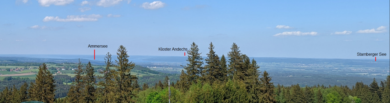 Der Ammersee ist 19km, Andechs 23km und der Starnberger See ist 22km Luftlinie entfernt.