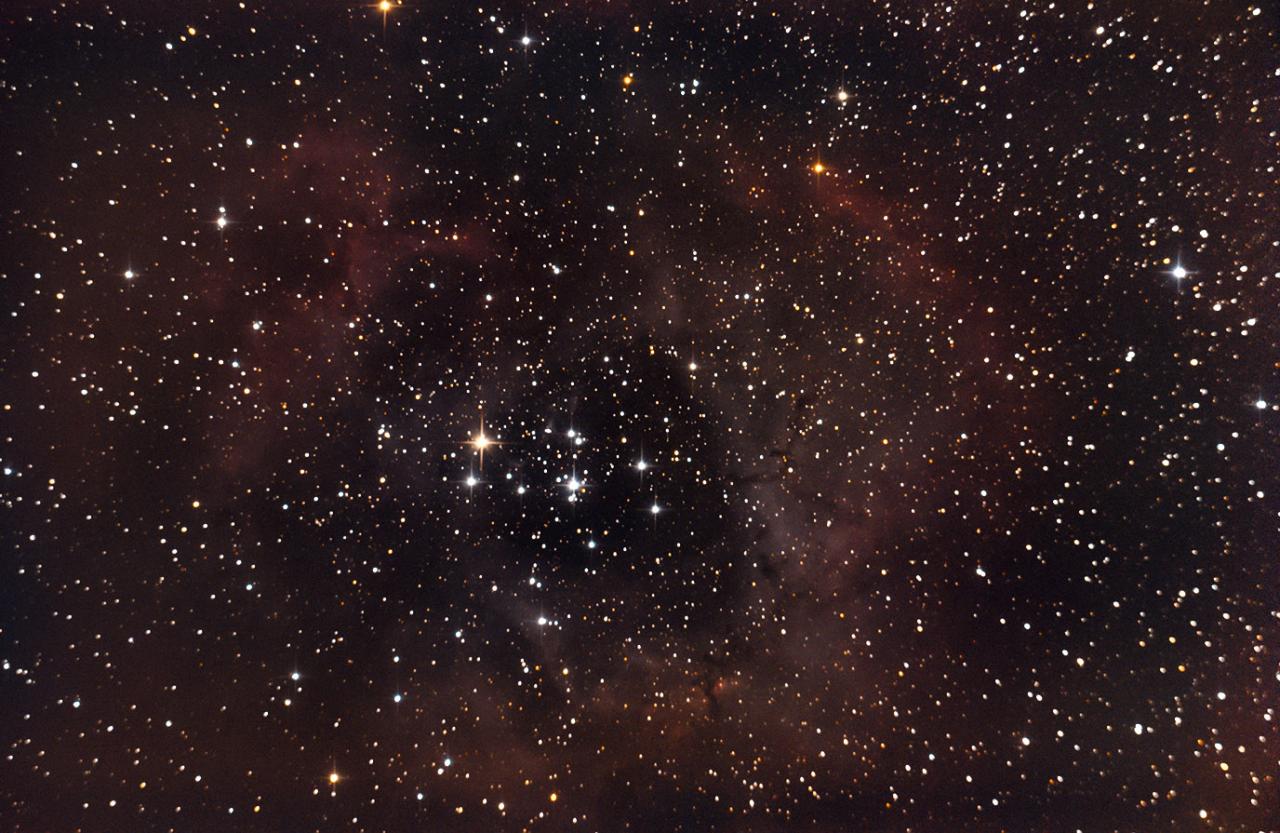 Im Sternbild Einhorn - der Rosettennebel. Auch ein sehr schwieriges Objekt - da nicht alles Kameras diese Nebelstruktur abbilden können.