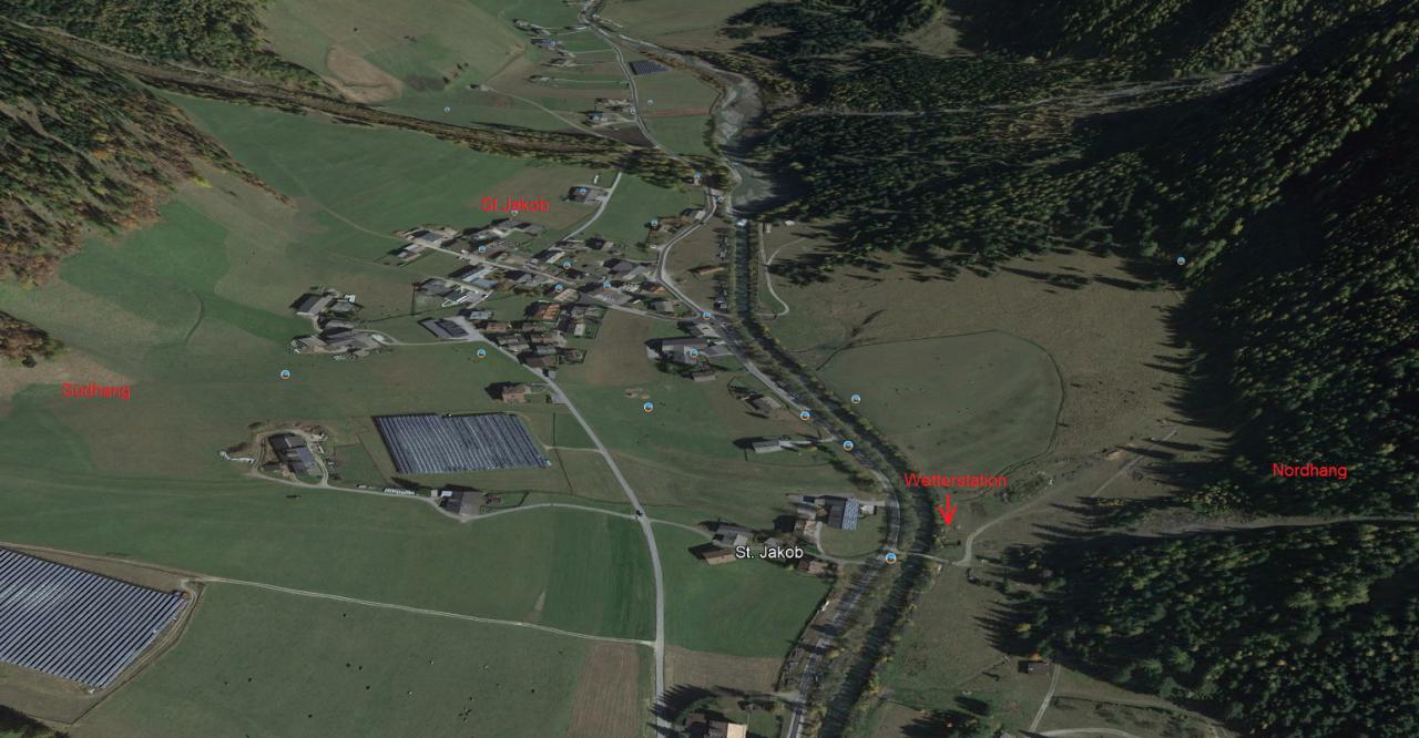(06.12.2022, 16:39)Mike97 schrieb: Link ist nur fuer registrierte User sichtbar. registrieren oder login.Man muss dazu sagen das St Jakob größtenteils auf der Nordseite des Talgrundes liegt (also wie ich mit mehr Sonne -> wärmer), die Station ist aber aber nahe des Nordhanges im Süden neben eines Flusses.