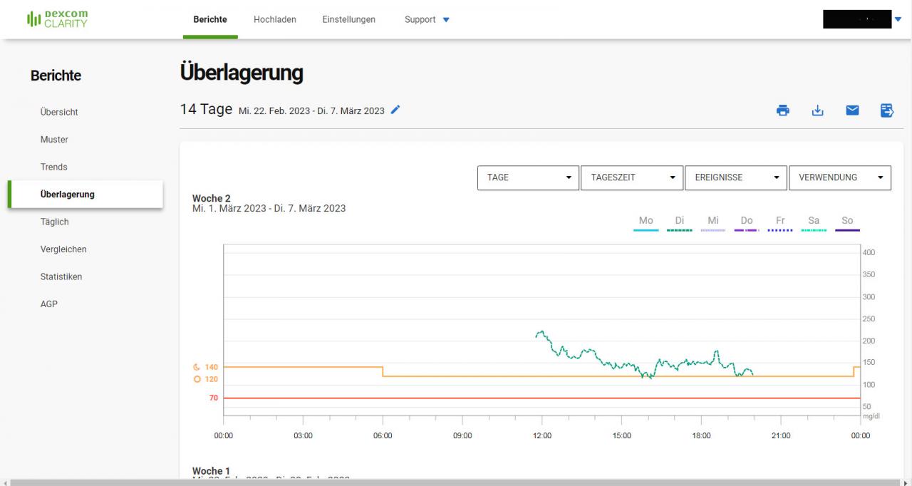 Vorläufig mal eine kurze Übersicht, wie das mit der Grafik am Dexcom - Server aussieht.