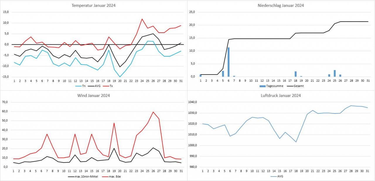 Der Januar war zu trocken und zu mild. Dabei verlief der Januar zumindest von der Temperatur her weitestgehend normal mit Mitteltemperaturen von -4 bis -6°C. In der letzten Dekade jedoch drehte er komplett frei, anders kann man es nicht nennen. Alles begann mit dem Aufkommen von Nordföhn kombiniert mit herumgeholten und sehr milden Luftmassen. Aus Norden sind die Luftmassen sonst eher kühl. Somit gab es im ganz Südtirol hohe Temperaturen bis in den Rekordbereich. Am Kloster Marienberg im Vinschgau ist die Temperatur sogar auf 16°C gestiegen und das auf 1300m! Dort wie auch hier im Pfitschertal ist die höchste Temperatur im Januar an dem Tag gemessen worden. Im Nachbarort hat die offizielle Station Pfitsch/St Jakob 12,6°C gemessen, was sogar nur knapp unter der Rekordtemperatur für den ganzen Winter lag (12,8°C am 28.02.2019). Auch danach blieb es teils sehr mild, selbst an der Station St Jakob ist es zwei Nächte hintereinander lang frostfrei geblieben, was für eine sehr geschützte inneralpine Muldenlage auf 1400m eine Hausnummer ist im Hochwinter. Nur mal zum Vergleich, die Mildphase vom 25.01 bis Monatsende hat ein Mittelwert von 1,5°C (rund 6-7K zu warm!), der vorherige ganze Rest des Monats (also 01.01-25.01) hatte dagegen nur -4,5°C als Mittelwert! Das resultierte in extrem schnellem Abschmelzen der Schneedecken. Teilweise ist selbst in geschützten Lagen um 1000m der Schnee aktuell fast weg, wo bis zum 24.01 noch 10-20cm lagen. In exponierten Hanglagen ist der Schnee teilweise bis auf 1700m nur noch in einzelnen Flächen oder sogar teilweise ganz verschwunden.