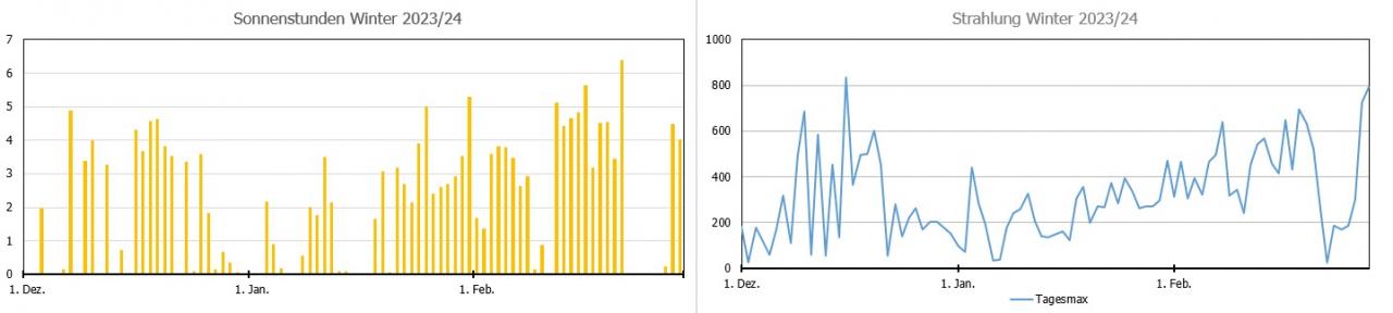 Der Winter war deutlich zu mild und normal nass. Während der Dezember und Januar normal zu milde Monate waren ohne extreme Abweichungen, wurde der Februar rekordmild. Auf den Februar gehe ich an der stelle nicht ein, dazu habe ich in der Monatsübersicht was geschrieben. Vor allem der Dezember ist relativ nass und tiefdruckgeprägt gewesen mit einer Neuschneesumme von 68cm und 90mm Niederschlag.