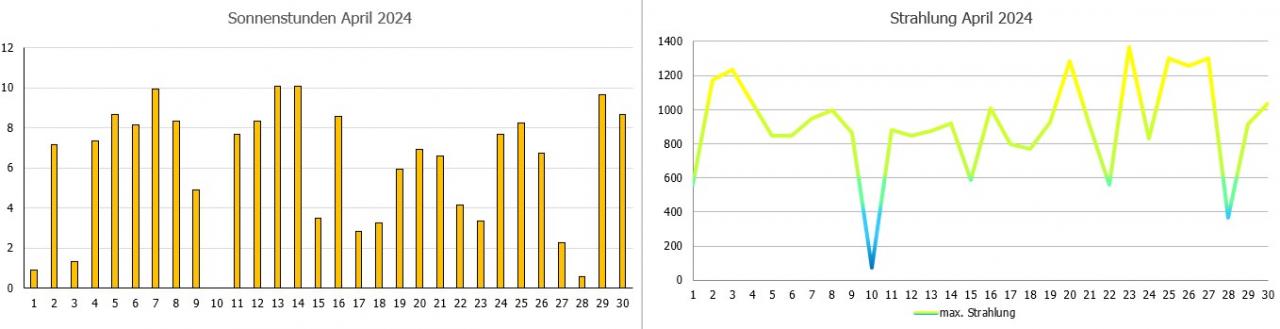 Der April war zu mild und sehr nass. Das könnte man zumindest anhand der Abweichung titulieren. Dennoch war das einer, von der Wechselhaftigkeit her, der beeindruckendsten Monate der letzten Jahre. So begann der Monat sogar schon teilweise sommerlich mit dem Finale kurz von Monatsmitte mit bis knapp 30°C im Unterland (auf 200-300m) und einer Rekordtemperatur von 23,1°C hier in Kematen bzw. 22,9°C an der offiziellen Station im Nachbarort St Jakob. Die offizielle Station hatte ihren bisherigen Rekord um 0,8K übertroffen, der sehr wahrscheinlich am Monatsende aufgestellt wurde. Das in einem Frühlingsmonat der Temperaturhöchstrekord in der ersten Hälfte recht deutlich gebrochen wurde, ist ebenfalls eine Erwähnung wert! Unterbrochen wurde diese Witterungsphase mit einem Tief, das einen starken eintägigen Wettersturz auslöste. So gab es nur 2 Tage nach gemessenen knapp 20°C gut 3cm Neuschnee und nur 3 Tage später wieder 22°C!