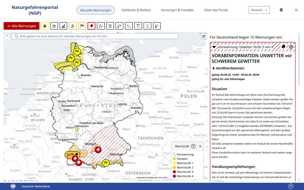 Fazit: ein Ende der atlantischen Wetterlage fraglich, ein Auf und Ab bei den Temperaturen, Süden deutlich wärmer - eine Option auf einen Hitzepeak mit Werten über 35 °C denkbar, das Potential für weitere Gewitterlagen bis in den Unwetterbereich. Also wenn vom Mittelmeer warme Luftmassen angesaugt werden, kann es schnell zu hefigen Gewittern bis in den Unwetterbereich kommen.