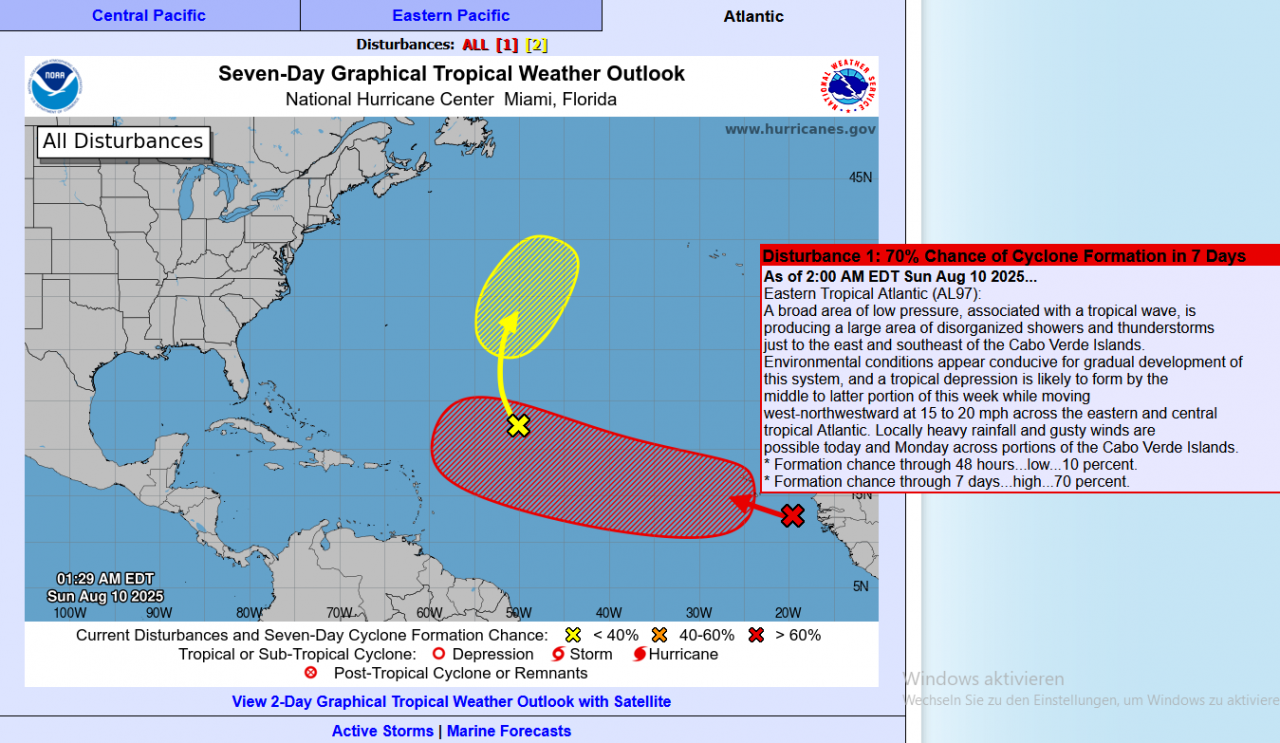 Damit sei das Thema Hurricans auf dem Atlantik in 2025 eröffnet.