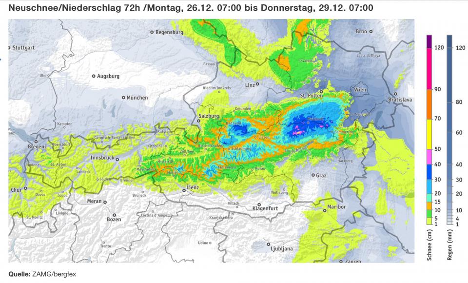 Südliches Ober- und Niederösterreich bis zu einem halben Meter!!!