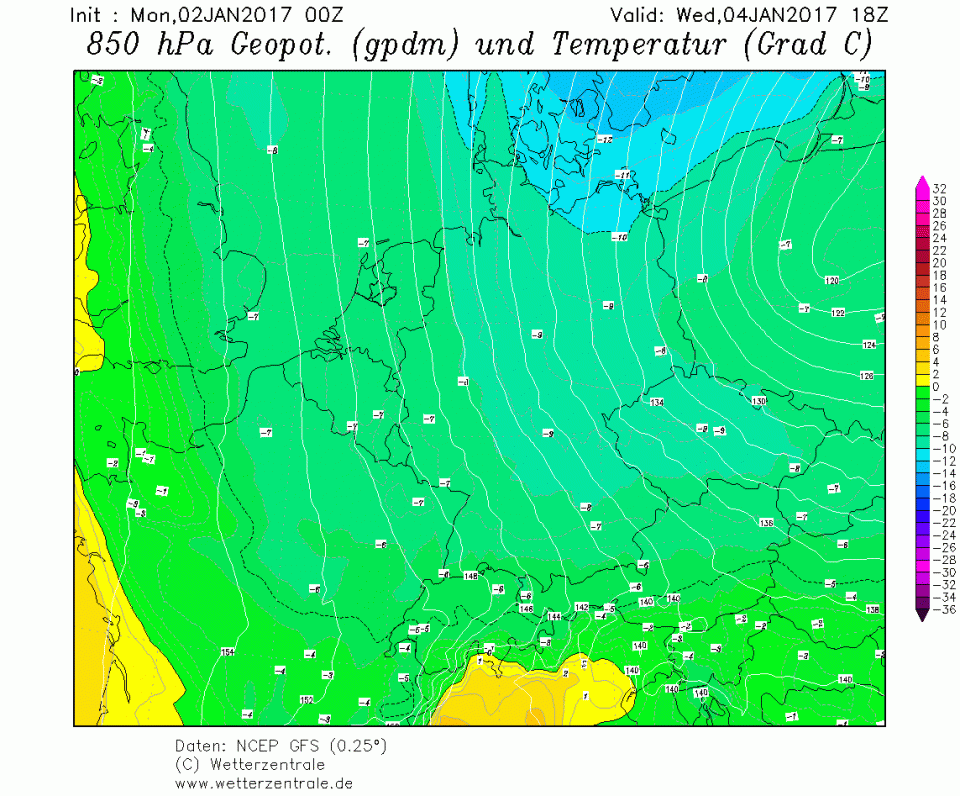 Grad auf 850hpa noch für Schnee bis ganz unten reichen: