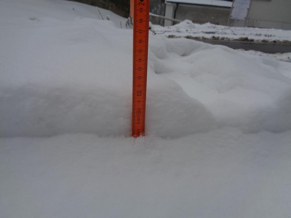 Gesamt SH ca. 8-10 cm, je nachdem, wo man misst und es sieht schön aus, der Neuschnee auf den Bäumen.