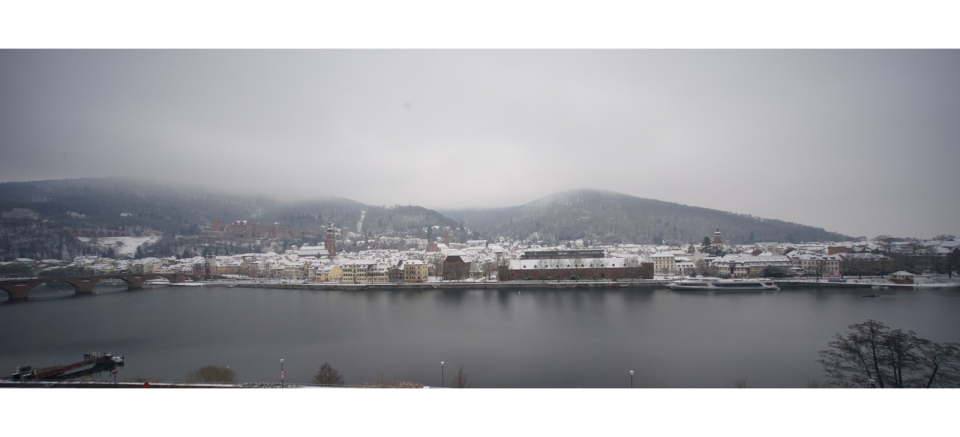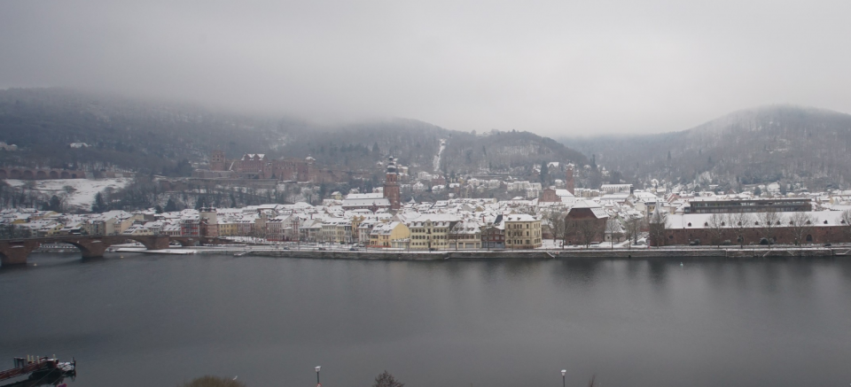 Auch Heidelberg ist weiss, Höhe ca. 120 m im Hintergrund des Schlosses, der Königstuhl geht bis 566 m rauf (Bilder anklicken, zum vergrössern)