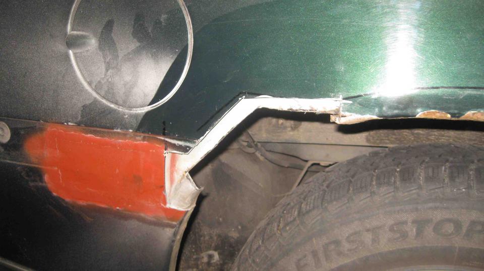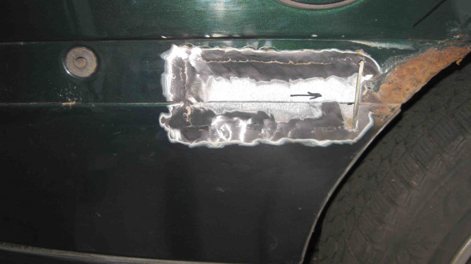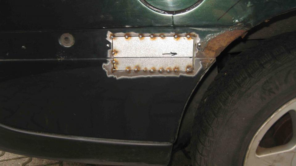 Anschließend habe ich ein Reparaturblech angefertigt und nach Art des Hauses bündig (auf Stoß) verschweißt.