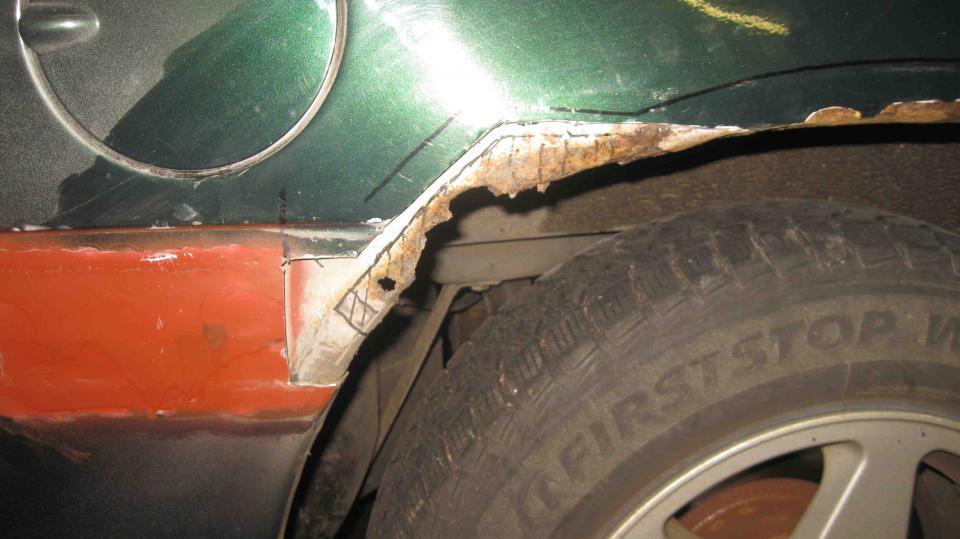 Ich habe den Caravan ja nun fast 3 Jahre und er hat mich bisher immer zuverlässig überall hin und auch wieder zurück gebracht. Gleich nach dem Kauf (er hat immerhin 400€ gekostet) habe ich die linke Seite blechsaniert, weil sie doch arg übel aussah. Die rechte Seite ging damals noch grade so, obwohl sich bereits damals Handlungsbedarf ankündigte.