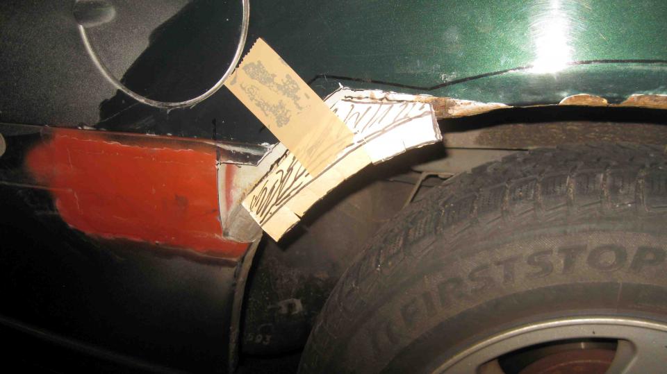 Nun wurde es etwas schwieriger. Es galt zu erkunden, wie weit sich der Rostfraß nach innen in den Radkasten vorgearbeitet hatte. Dazu habe ich das äußere Blech im verdächtigen Bereich geöffnet.