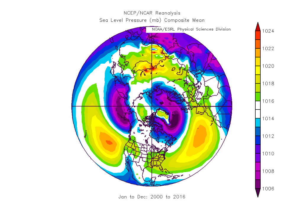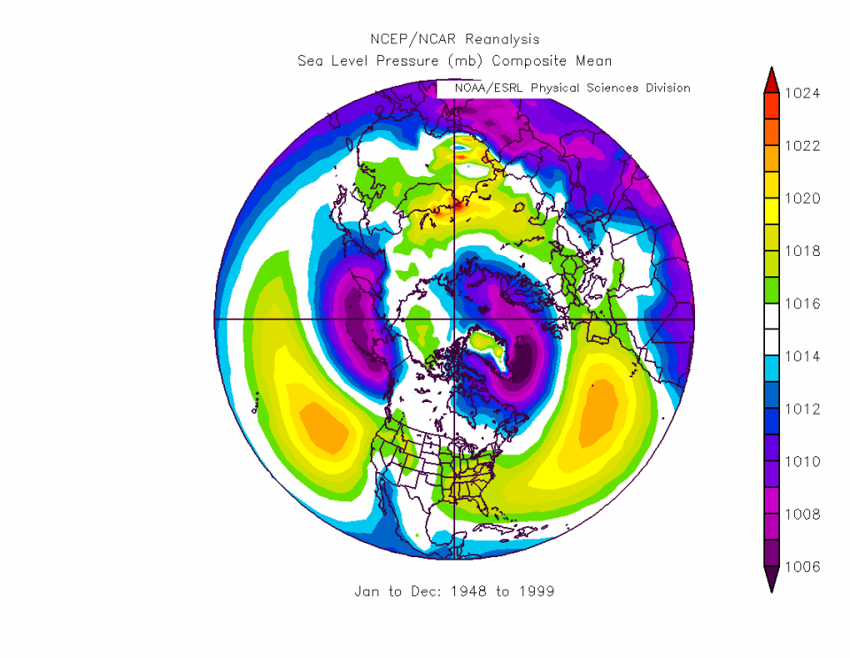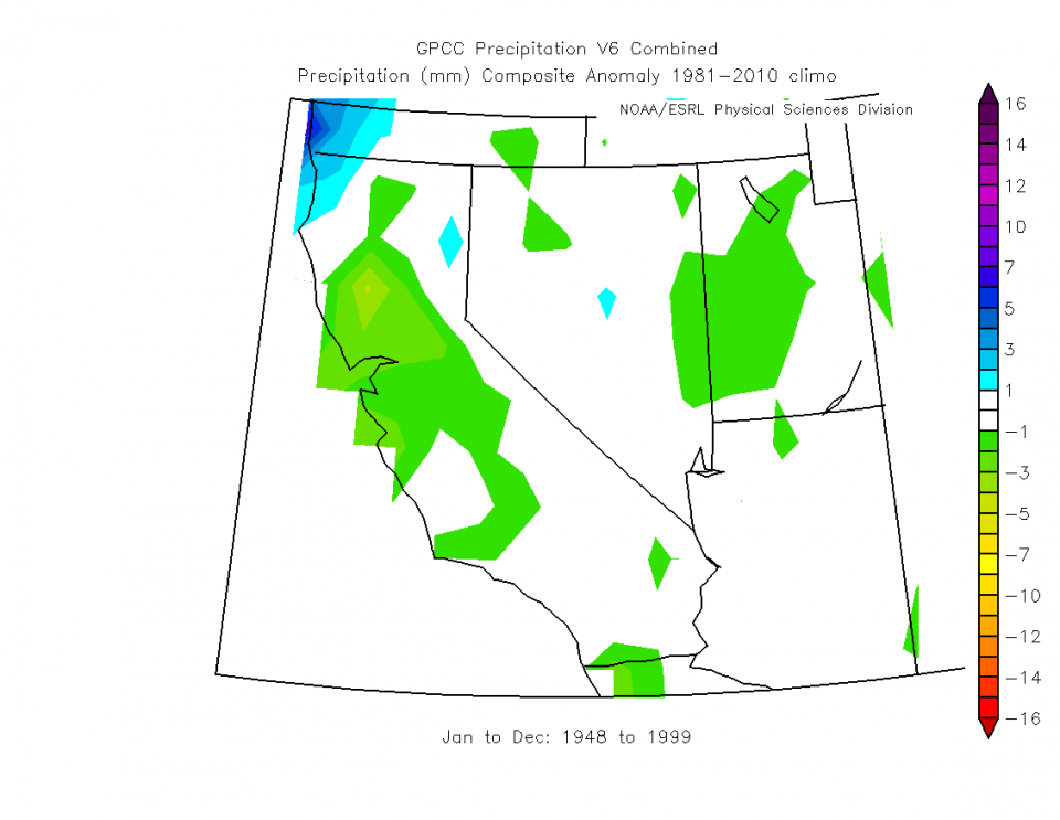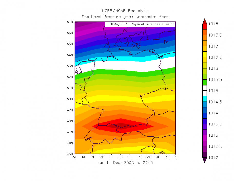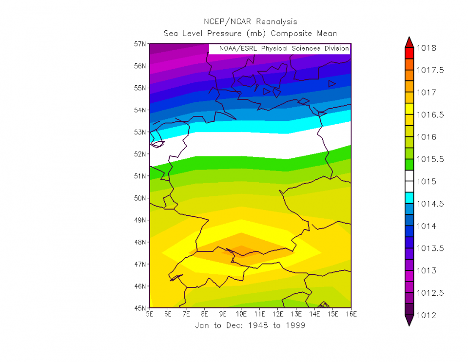 Die Abholzung des Regenwalds spielt denk ich auch ne Rolle, aber nicht so eine große wie der schwächer werdende Jetstream aufgrund der wärmer werdenden Pole. Und der ermöglicht eben eine größere Hochdruckdominanz bei uns, im Maßstab der Nordhalbkugel erkennt man's kaum. Vor 2000 (ab 1948):