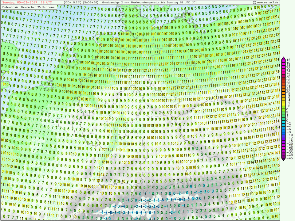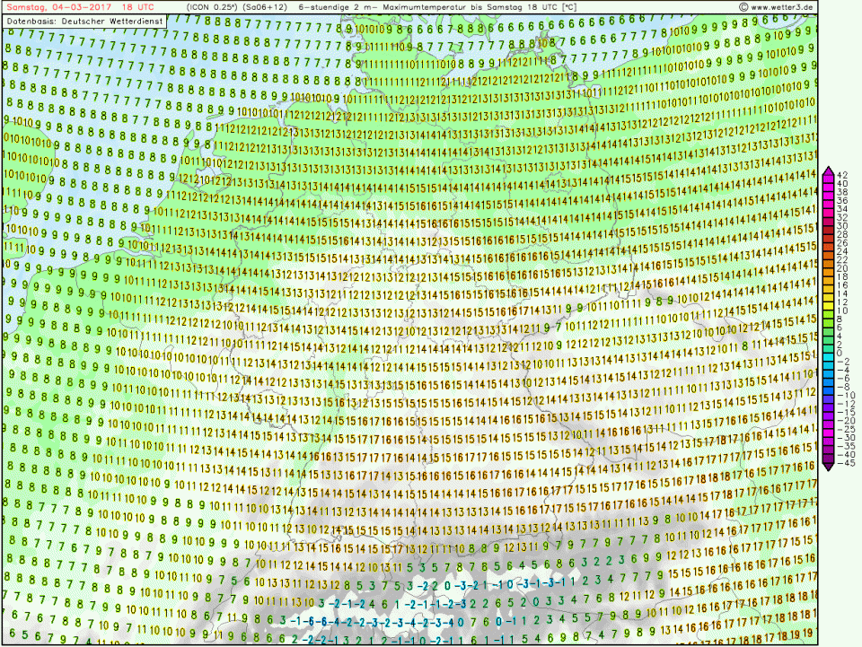 Während wir heute fast überall über 10, meist um 15 und in der Spitze denk ich über 20°C erreichen...