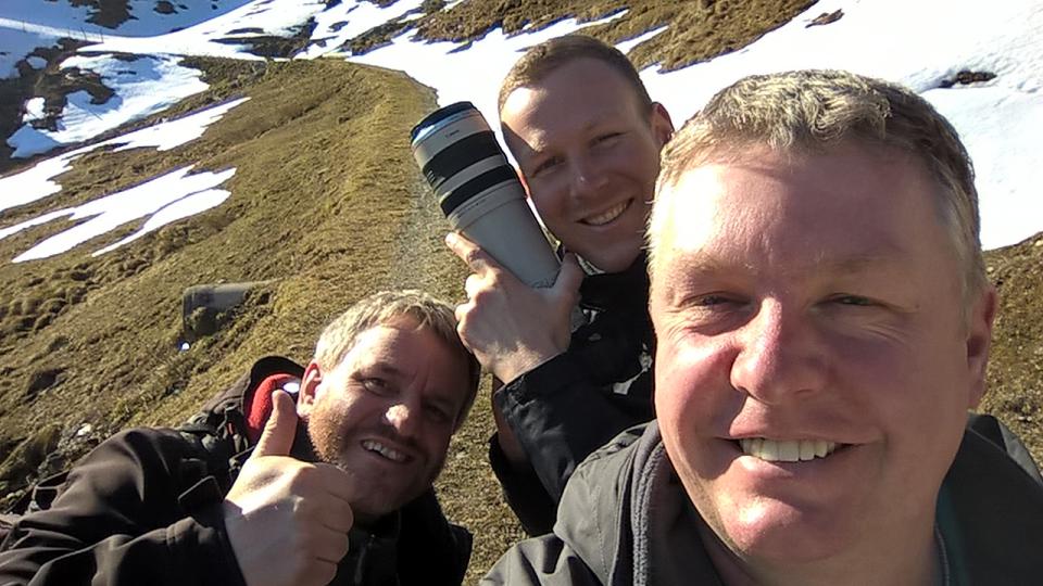 Du hattest es eh schon richtig geschrieben. In der Mitte ist Bär, eindeutig an seiner Hand wieder erkannt, rechts Bratwurstbubi, seine Rückseite haben wir ja schon mal gesehen und links müßte vom sympatischen aussehen her devinitiv Wettergucker sein.