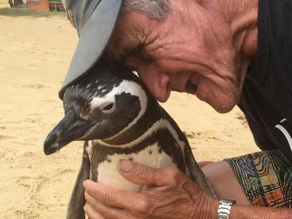 Denn João Pereira de Souza ist Protagonist einer recht unglaublich anmutenden Geschichte. Im Frühjahr 2011 war er am Strand unterwegs, als er plötzlich einen Pinguin dort liegen sah, verklebt mit Öl, ein Bein gebrochen, am Rücken verletzt. Dem Tod geweiht. Er nahm ihn die 50 Meter mit zu seinem Häuschen und pflegte ihn wieder gesund, er schmierte ihm den Rücken sogar mit seiner eigenen Rückensalbe ein.
