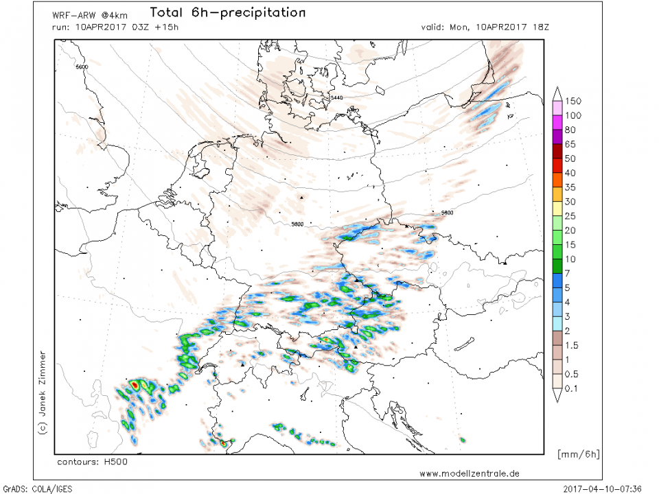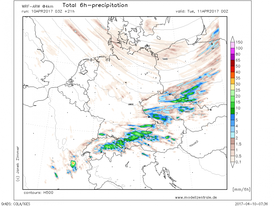 Der Schwerpunkt wird sich im Laufe des Tages dann auf das südliche/östliche BW, Bayern, Sachsen und Brandenburg konzentrieren.