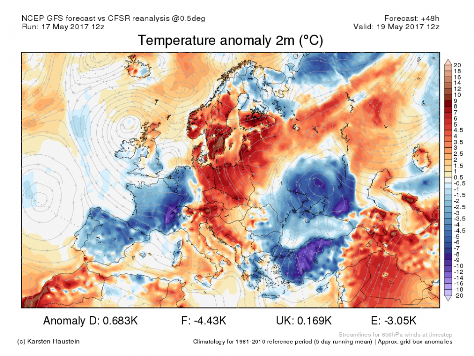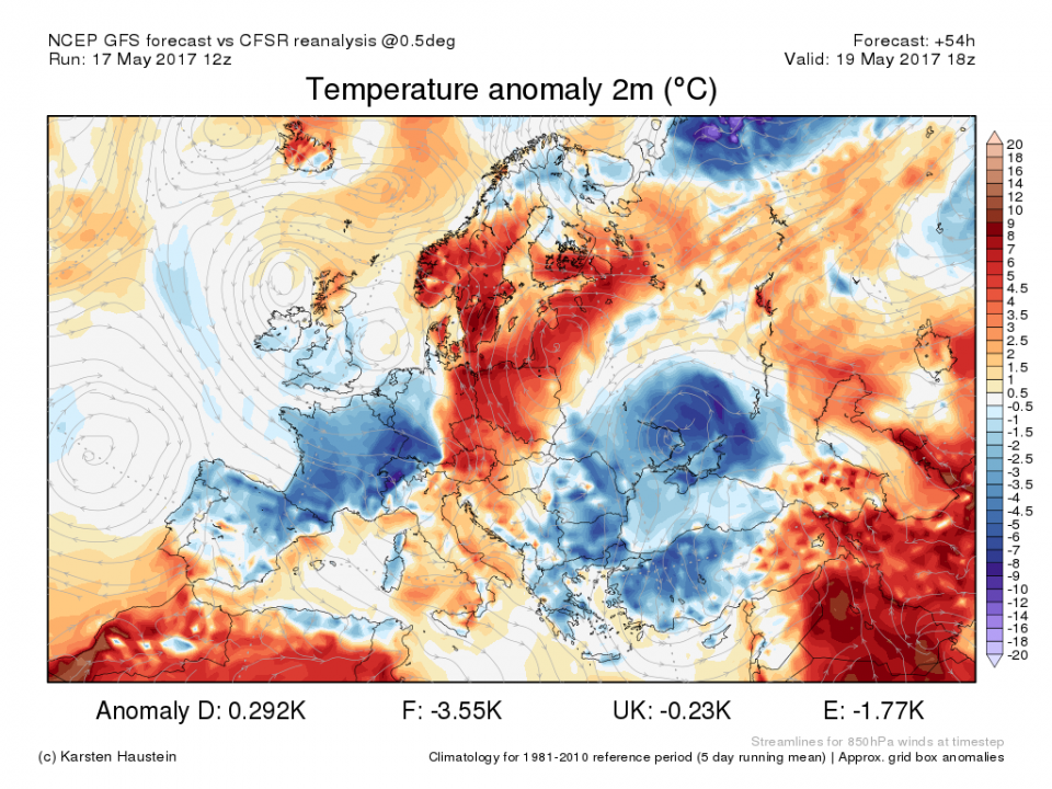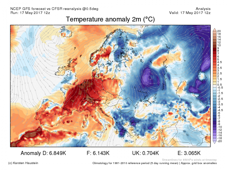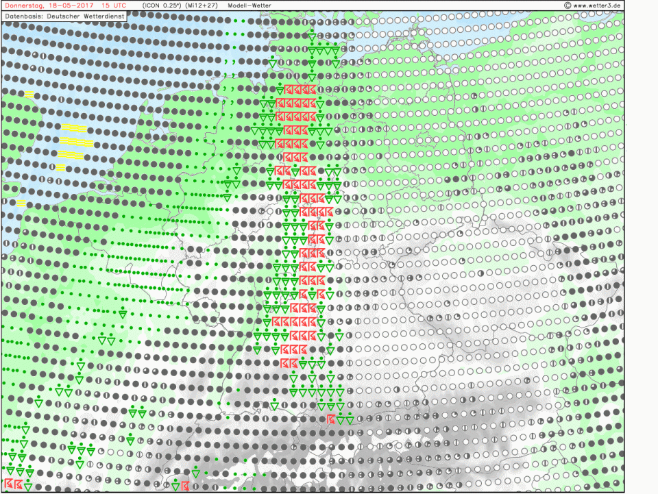 Wie weit die Wetterlage nach Nordostdeutschland (ewig gestrige könnten auch "der Osten" oder "die neuen Bundesländer" mit Verweis auf den Unterschied sagen) vorankommt, muss kurzfristig geklärt werden, es könnte dort auch verbreitet trocken bleiben weil das Hoch zu sehr blockiert.