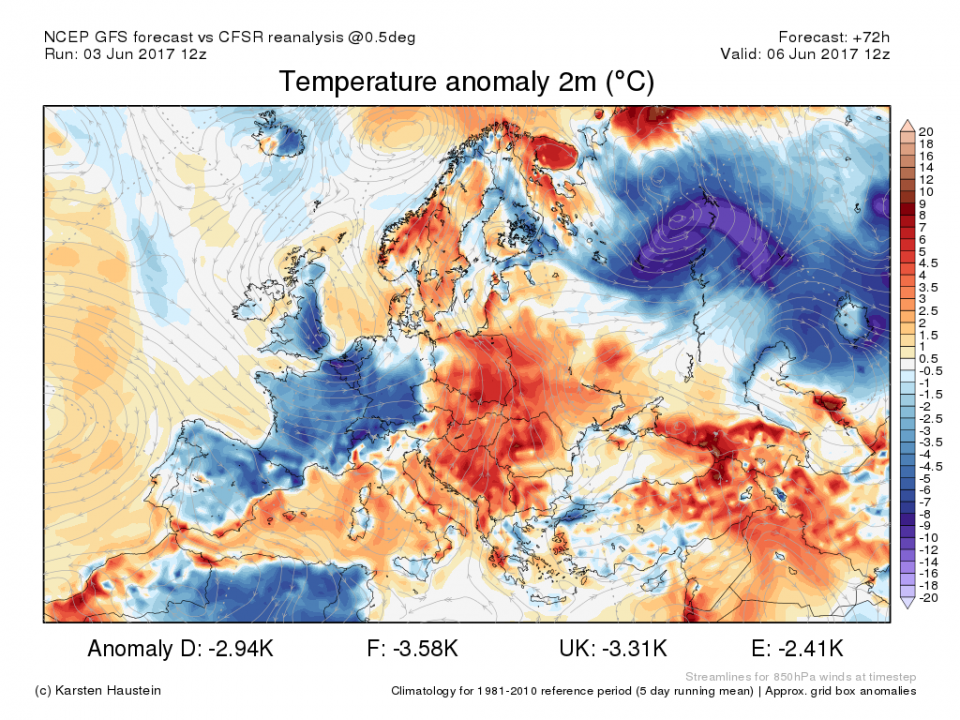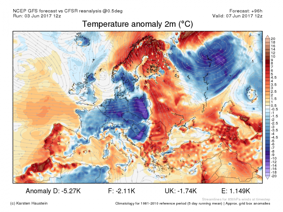 Danach kommt es zu einer Südwestlage, aber da ist ja die Nordwesthälfte am nächsten am Tiefdruck, siehe August 2015: