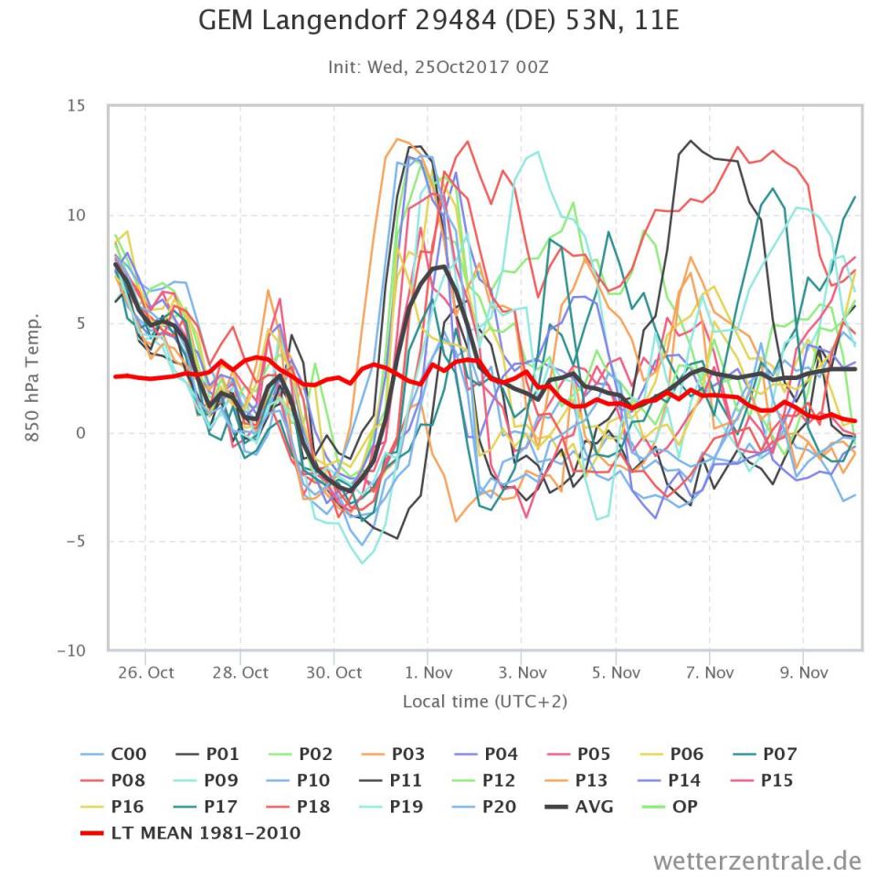 Ich bin mir wegen der unsicheren Entwicklungsmöglichkeiten in fast alle Richtungen noch viel zu unsicher, um eine ernsthafte Prognose abzugeben, wie es nach dem Monatswechsel bei uns und in Skandinavien weitergehen wird. Es könnte also auch durchaus in eine Westdrift wechseln mit feuchtkalten Ambitionen, also Schmuddelwetter im Flachland und auch in den Mittelgebirgen. Daher ruhig Blut an die Wintersüchtigen. Machen wir doch erst einmal den Oktober platt!