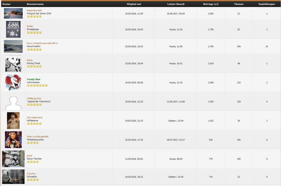 Die 10 fleißigsten "Beitragschreiber" führt Regensburg_91 an - er knabbert als Erster mit 2.992 schon an der 3.000.-Marke: