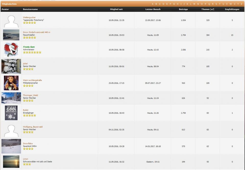 Eure eigenen Werte könnt ihr ganz einfach selbst über die Mitgliederliste (reichts oben) selbst abfragen! (Durch Klick auf die