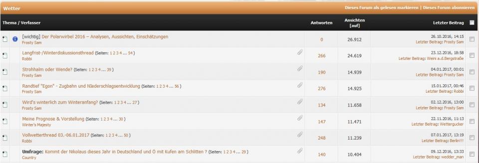 liegen auch jeweils beträchtlich schon über 10.000! im "Wetter"-Forum haben es folgende Threads über die 10.000 - Marke geschafft: