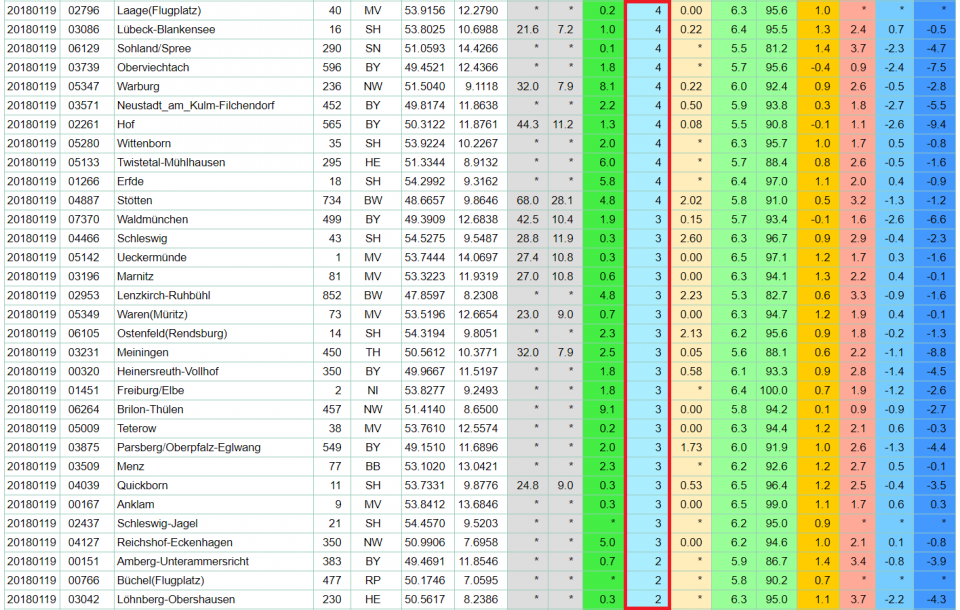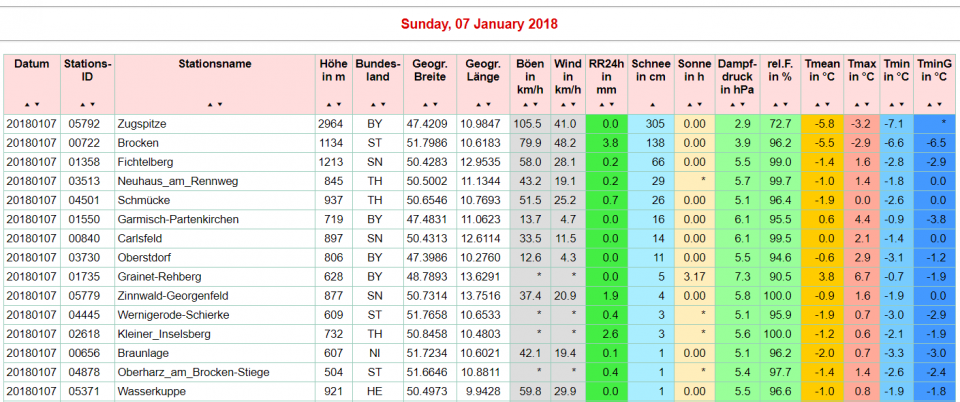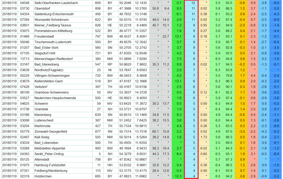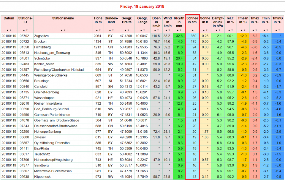 Heute, 17.1.18 meldete DWD 6 cm, in der Realität waren aber in der Nacht weitere Schauer gezogen. 12 cm