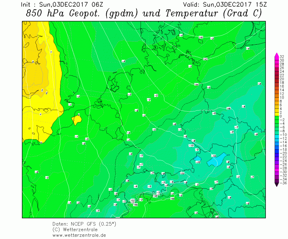 ca. -4 Grad auf 850hpa sollte die SFG dabei stark schwanken zischen 300 und 700 Meter
