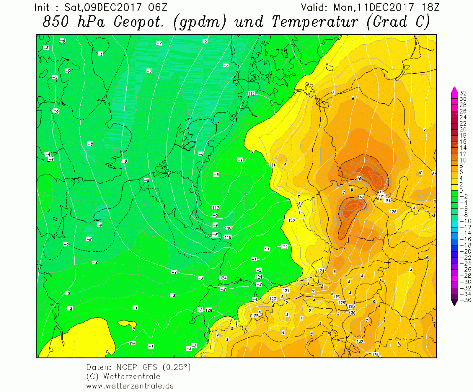 würde der Nordwesten noch relativ viel milde Luft des Kerns abbekommen, und