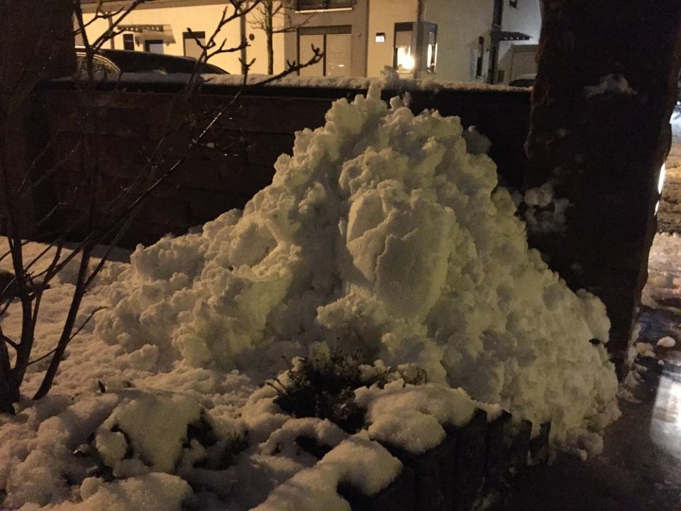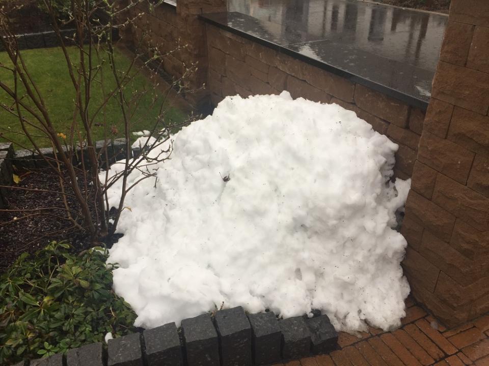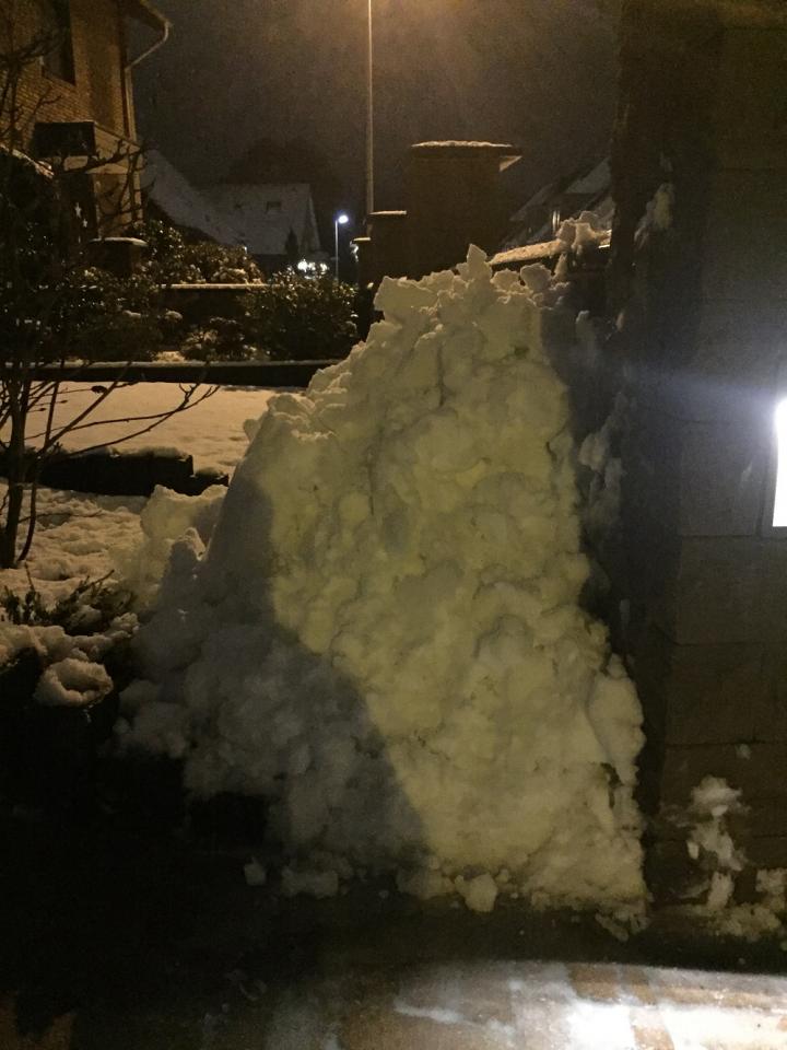 - Bei Schneezuwachs in den kommenden Tagen (wenn er denn kommt) wandert dieser von meiner Einfahrt ebenfalls auf den Haufen. Meine Einfahrt misst etwa 30m²