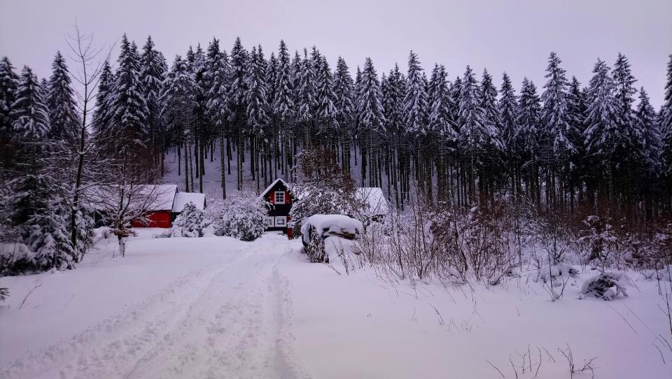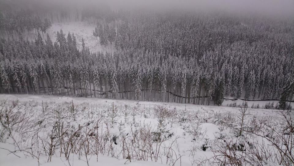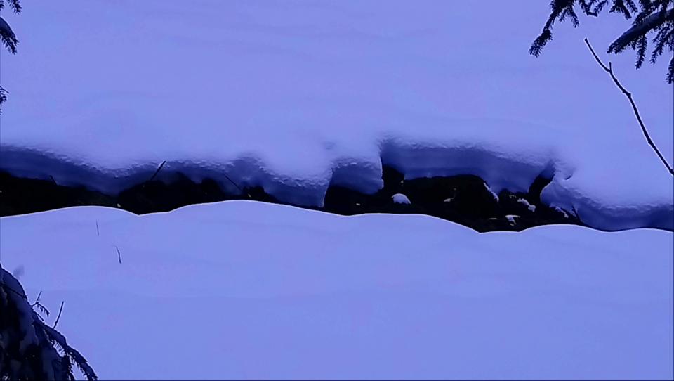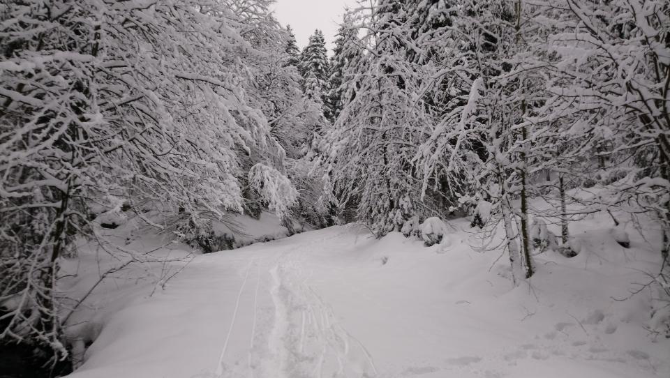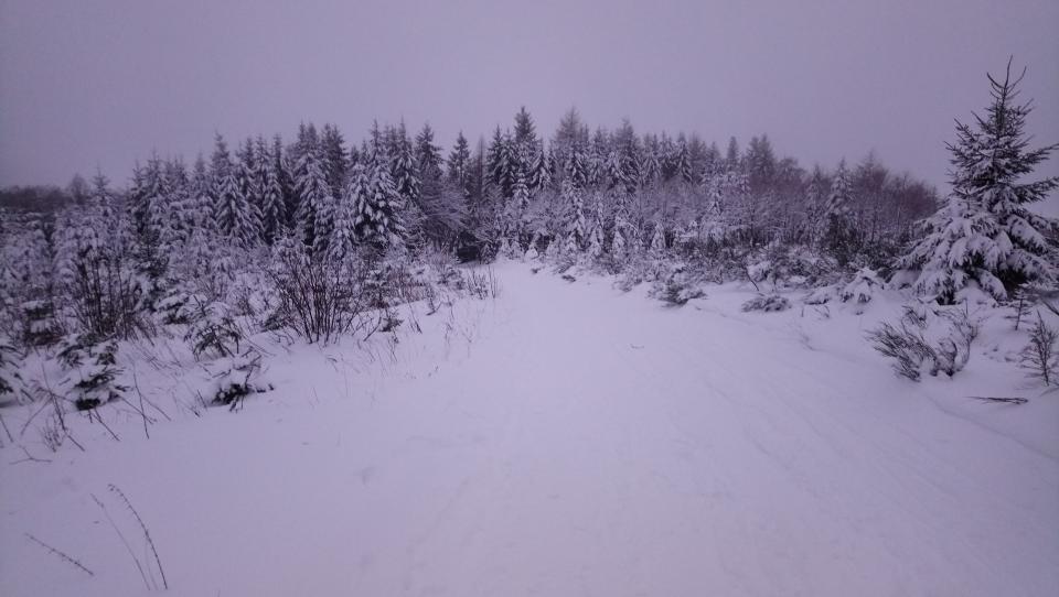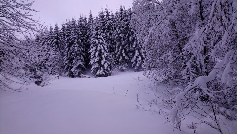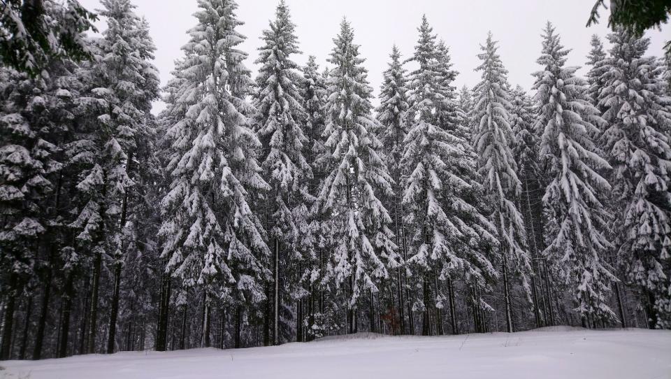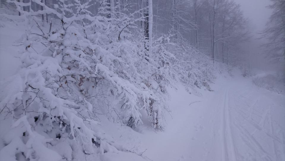Hi, ich war heute skilanglaufen im Gebiet östlich von Westfeld im Lennetal. Das ist in diesem oberen Bereich ziemlich eng, sodass im Winter kein Sonnenstrahl da runter kommt. Und in so enge Täler kommt Wind schwerlich rein, sodass der Schnee kaum von den Bäumen geweht werden kann.