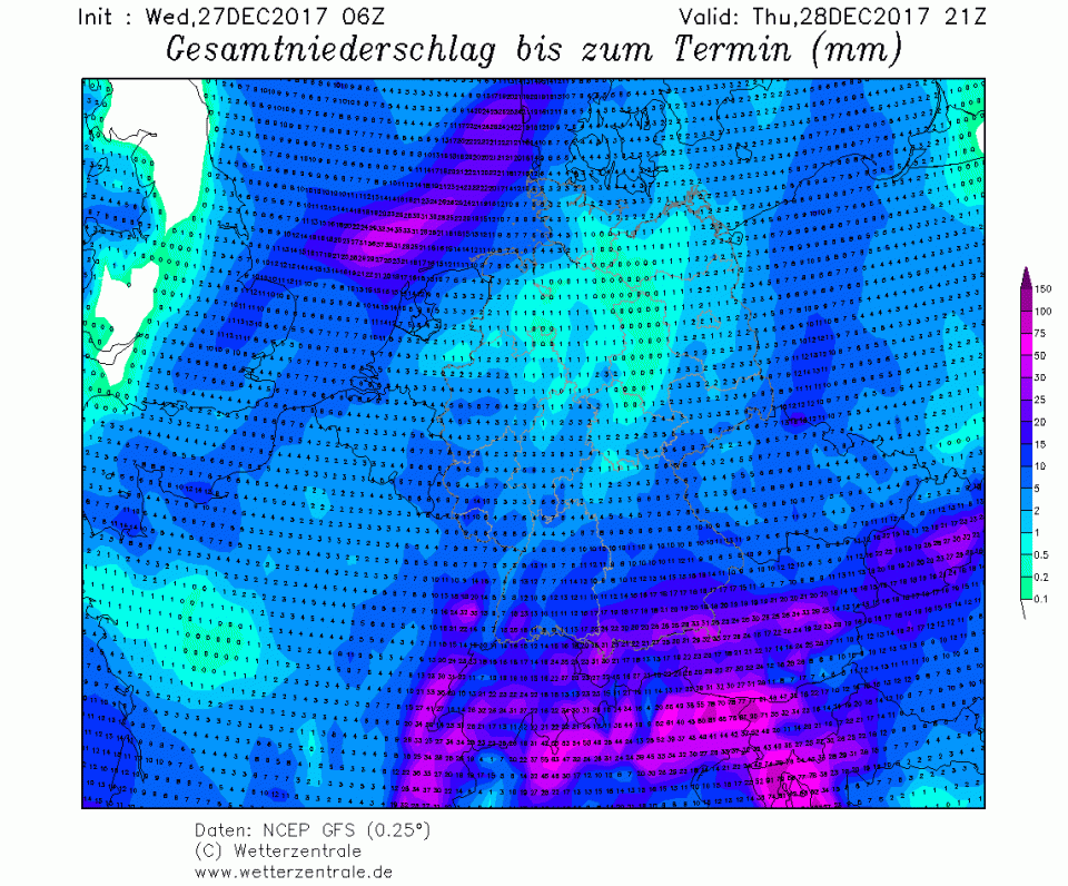 Das sind die erwarteten kumulierten Schneemengen, wie sie "bergfex" drin hat - bis zum Wochenende: