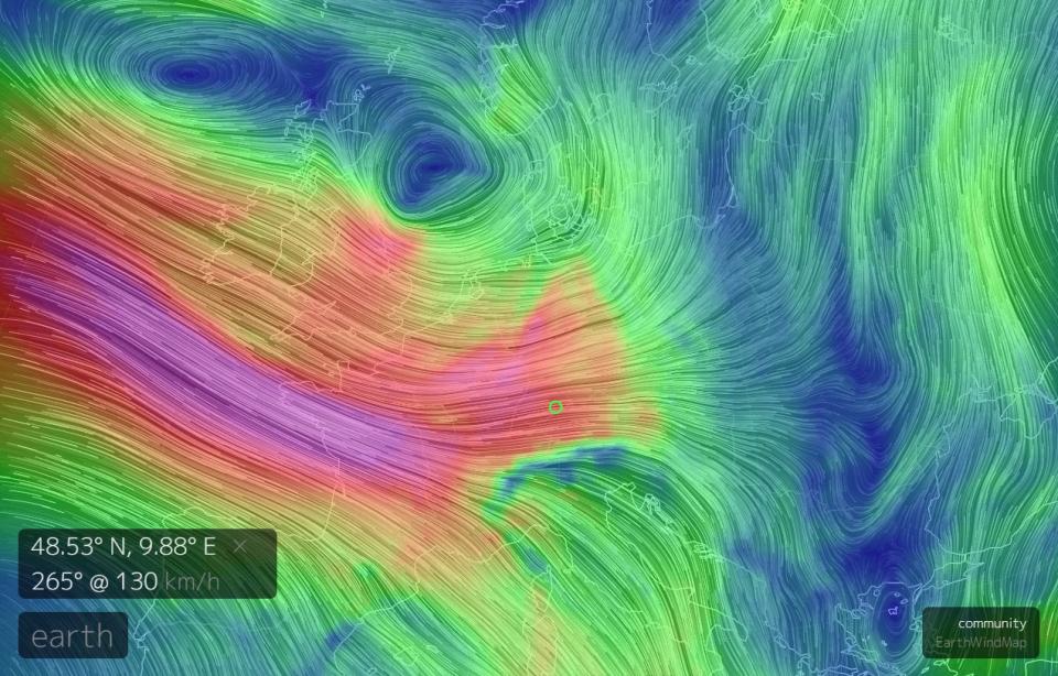 Auch die eingelagerten Gewitter werden für 120km/h sorgen können.
