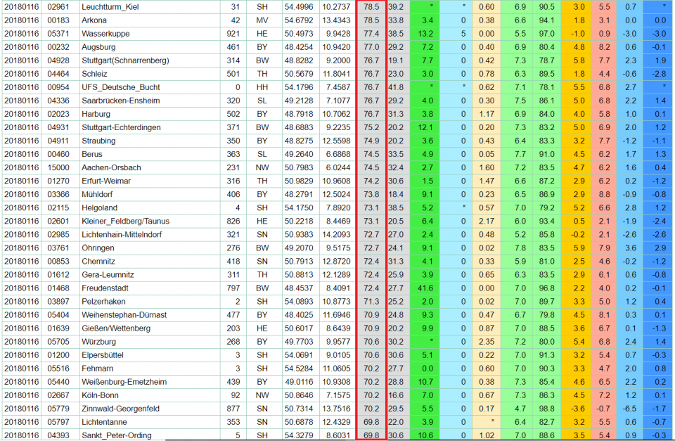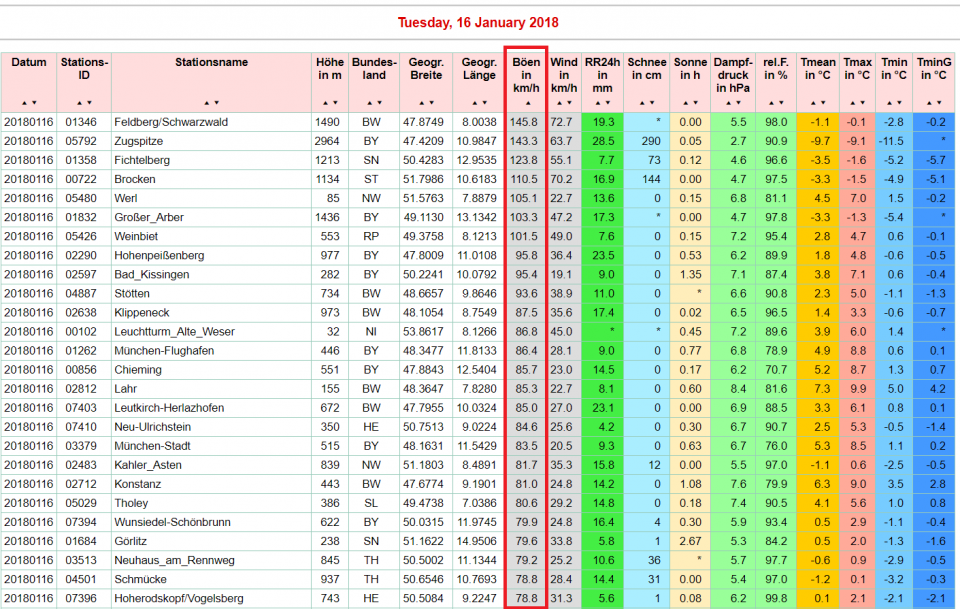 und seltener noch auch als Orkanböen (>119). Oben auf den Mittelgebirgen (z.B. jetzt auch