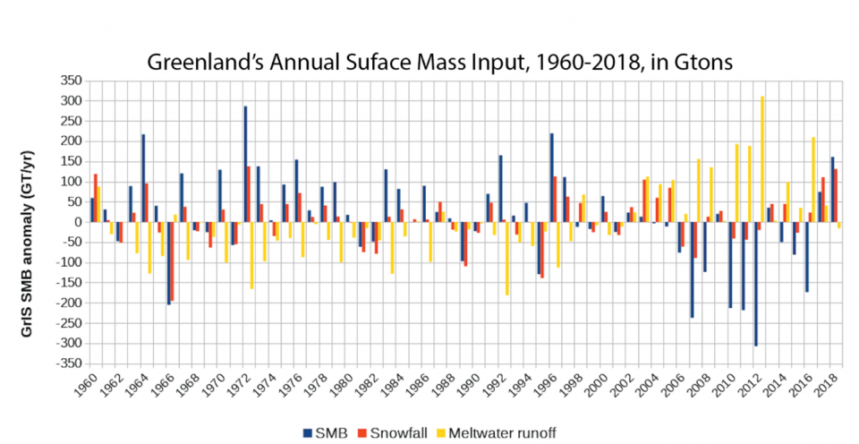 zur Eisschmelze in Grönland; Nein, hier ist kein Trend zum Eiswachstum festzustellen, im Gegenteil, die Abwärtsspirale besteht leider weiterhin