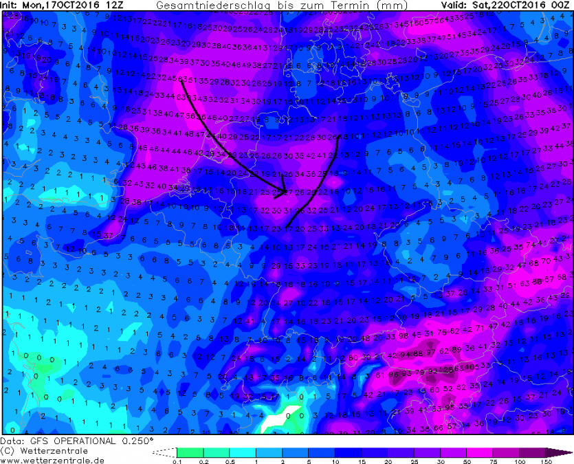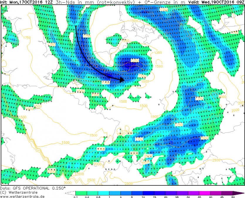 Wenn es so kommen würde, dann würde es zumindest auch hier ordentlich an Regen runter kommen, da die Niederschläge