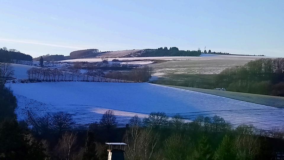 Takt - 0,9°C, leichter Schneefall, 0,1cm neu, hat jetzt erst angefangen. Der Haupt-Schneefall ist am Rhein.