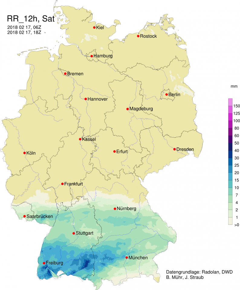 Wie die Werte vermuten lassen, handelt es sich um nassen Pappschnee.