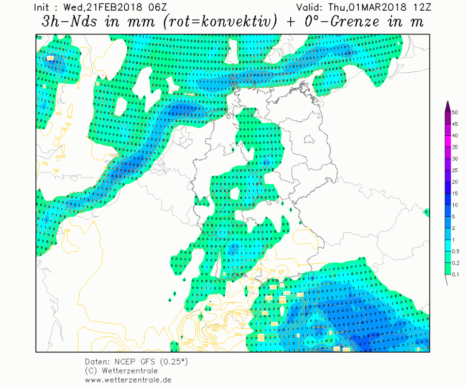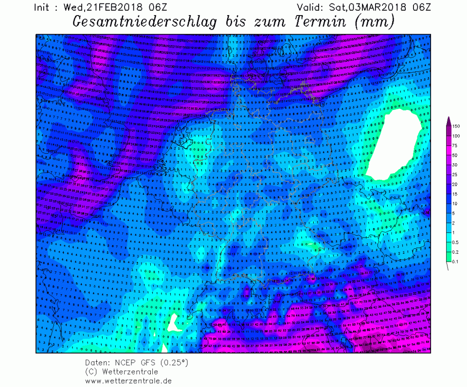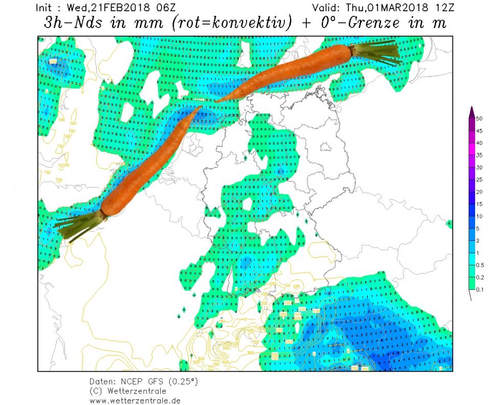 Übrigens spricht alles dafür, dass es auf dem Kahlen Asten den Rest des Februars bei Dauerfrost bleibt. Und bis heute gab es auch nur Dauerfrost da oben. 28 Eistage im Februar gab es seit Aufzeichnungsbeginn 1955 genau 1mal: Im Februar 1956, dem kältesten Monat seit 1881.