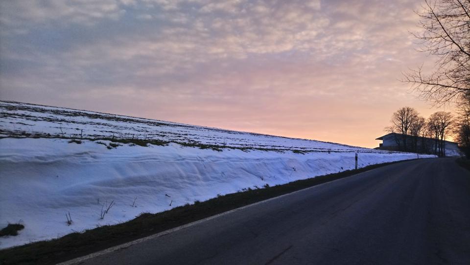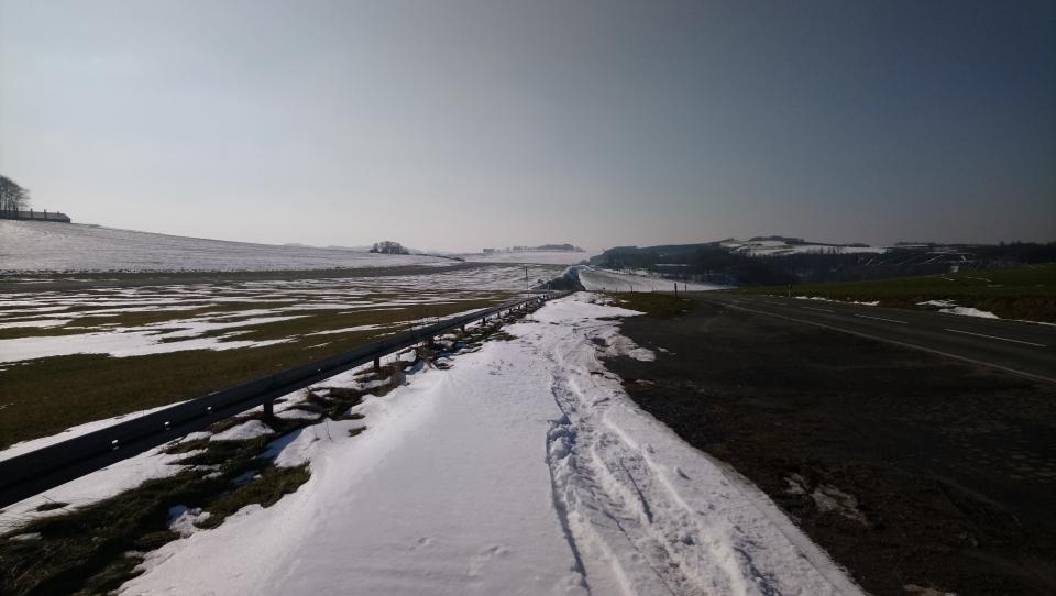 Takt 0,8°C, 2/8 bewölkt, Tmax 4,5°C. Nach wie vor Schneefelder bis 7cm Höhe.