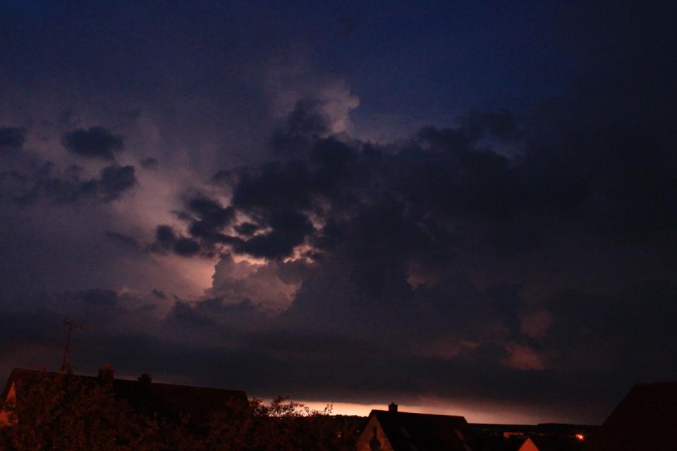 Hier hat sich knapp nordöstlich nun eine kleine Zelle gebildet. Schöne Wolkenblitze zum anschauen, aber vor Ort leider wieder kein Niederschlag.