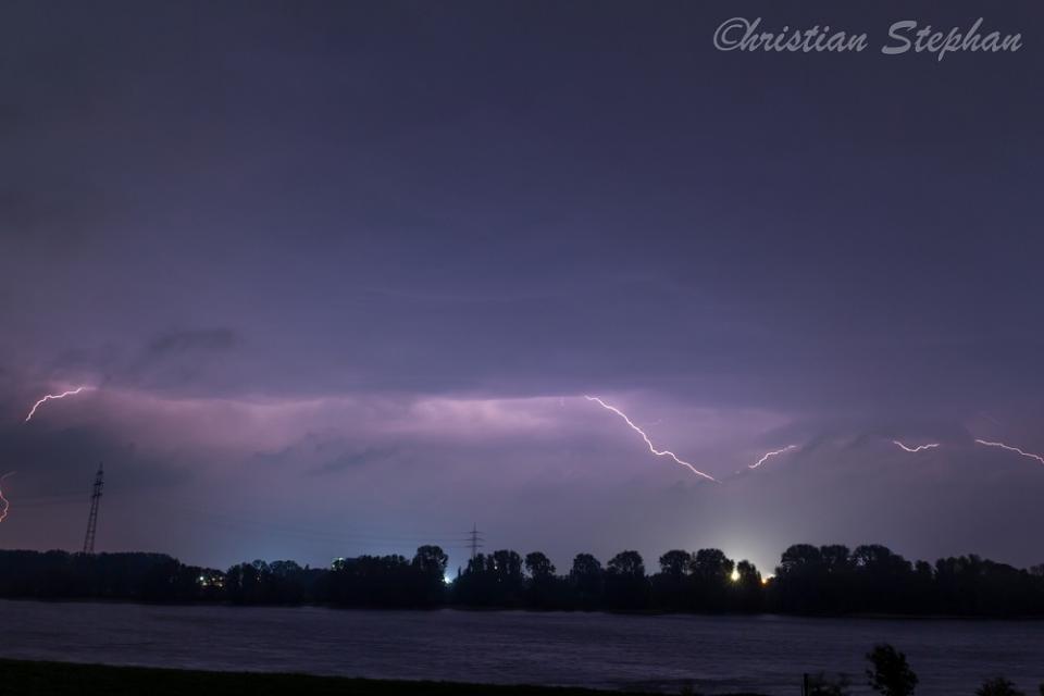 Nachdem es bereits am frühen Nachmittag ein kleines Gewitter über den Niederrhein schob, bildete sich am Abend westlich des Rheins eine zunächst nur kleine Zelle, die es zunächst nur auf ein paar wenige Blitze brachte.