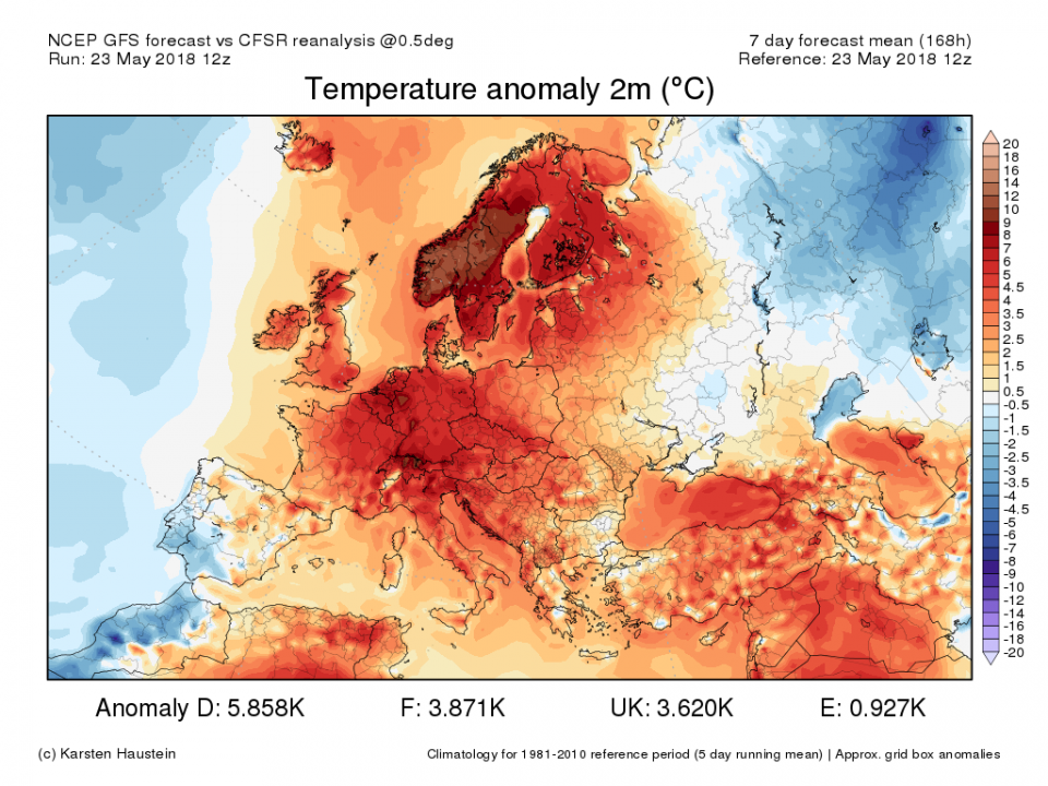 Aktuell hat der Mai schon einen Monatsschnitt von ca. 14,3°C. Dies entspricht einer Abweichung von 2,2 K.