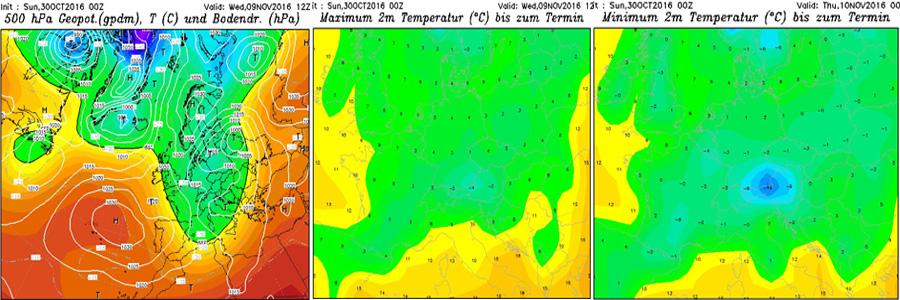Da sehen wir also am 9.November einen wunderschönen Trog ausgebildet, mit Temps um- oder knapp