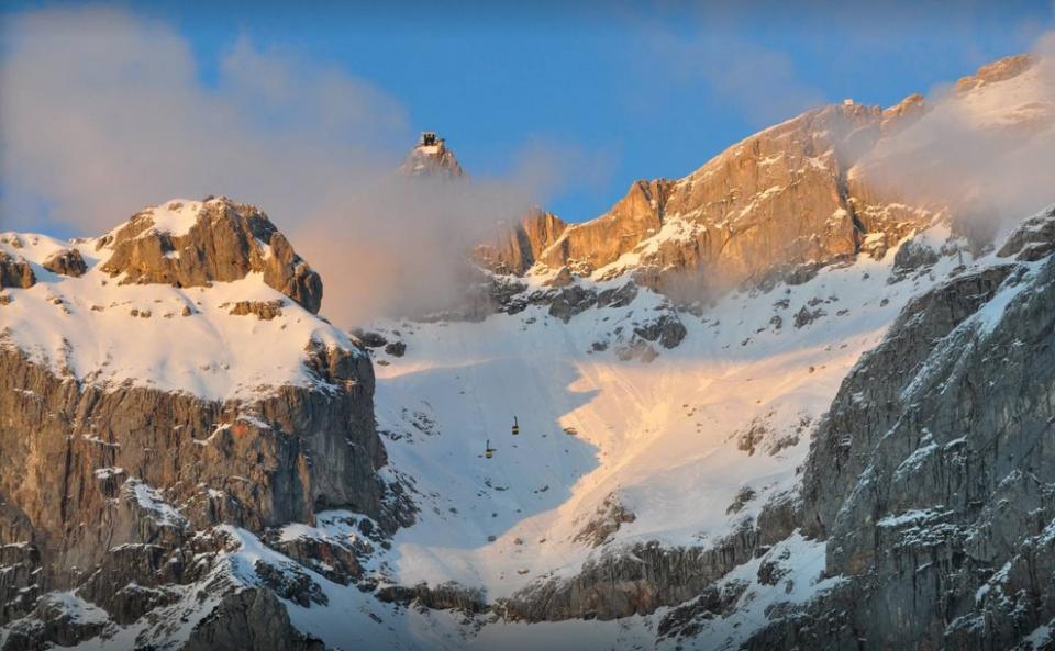 ... und hier gehen die Gondeln (nahe der beiden Gasthofs weg) dann ganz rauf zu den 18 Gletscherloipenkilometern: