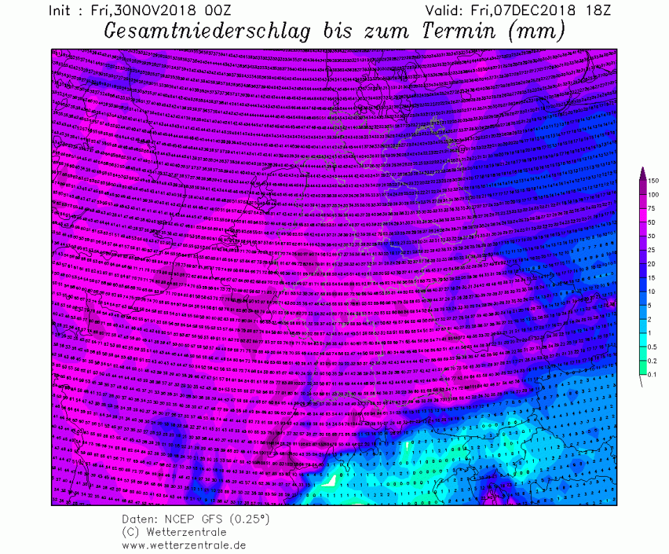ziemliche strammes West-Südwest steht an die nächsten Tage, mit doch einiges an Regen