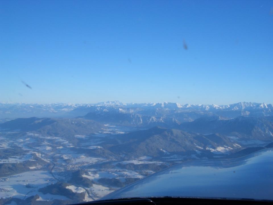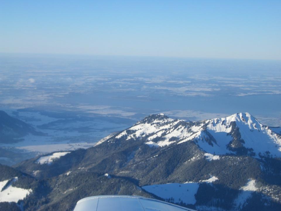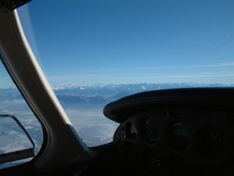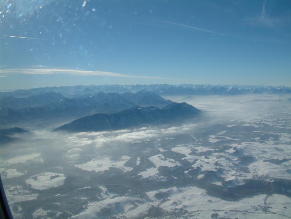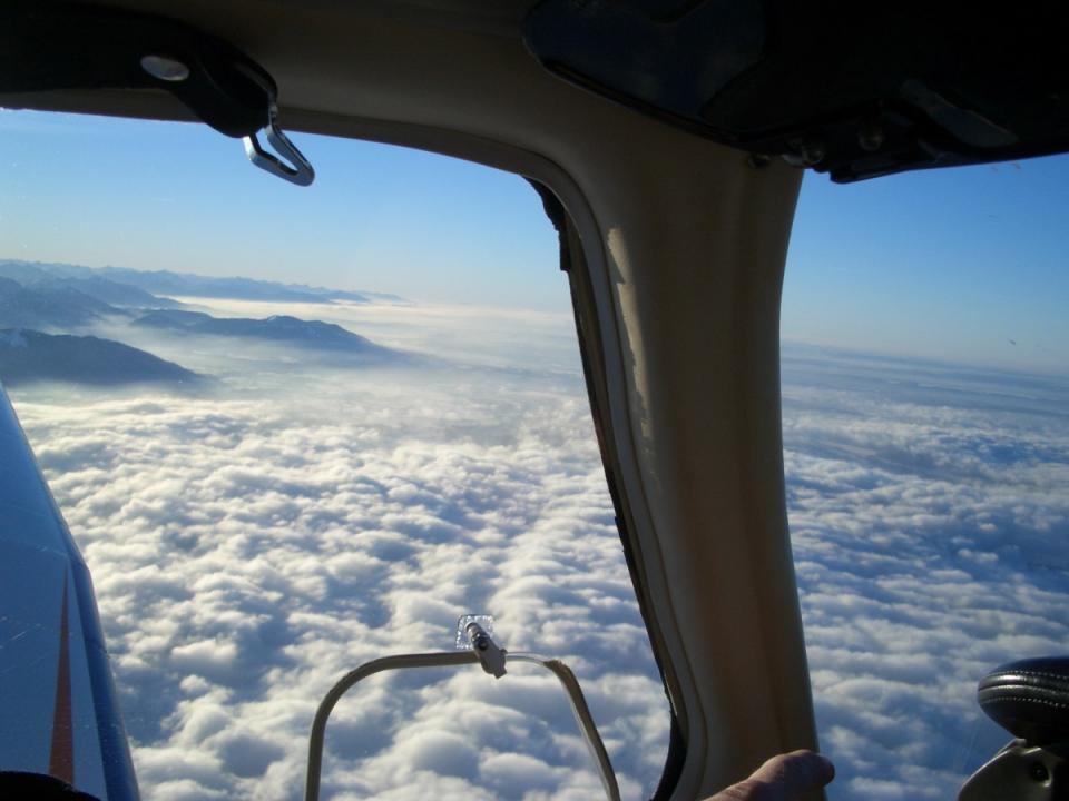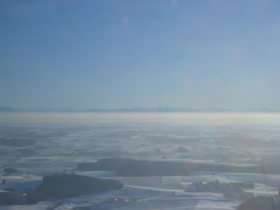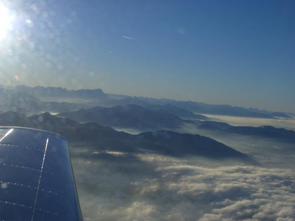 Schon 15min nach dem Start waren über der Inversionsschicht die Alpen zu sehen: