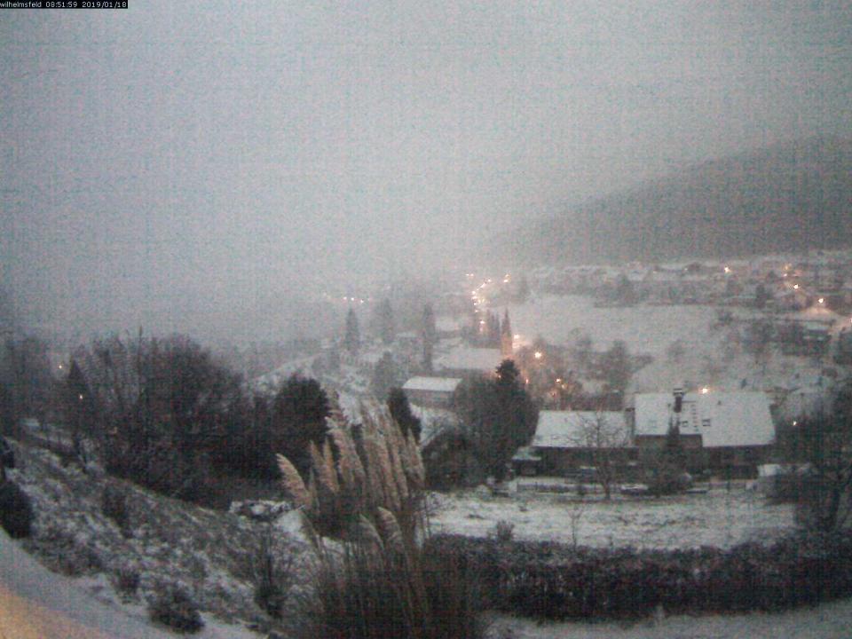 Hier seit etwas über 1 Stunde, leichter Schneefall, der auch überall liegen bleibt.